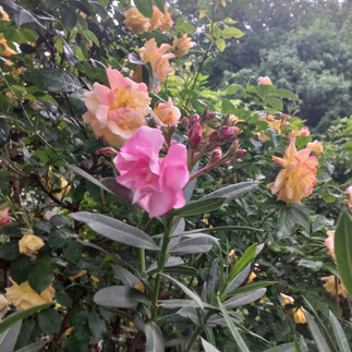 Wenn Oleander und Pfingstrosen gleichzeitig blühen sind das wohl die positiven Auswirkungen des Klimawandels im Garten. Die Rosen sind in voller Blüte, die gelben Lilien strahlen mit der Sonne um die Wette und die Hortensien am Gartenzaun beginnen zu blühen.